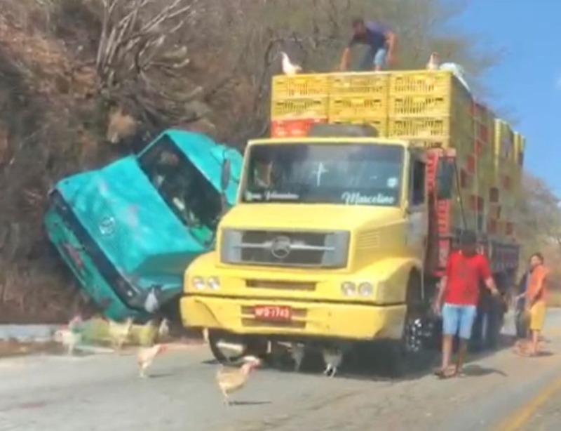 Na manhã desta terça-feira (05), um acidente envolvendo um caminhão carregado com dezenas de galinhas vivas ocorreu na PB-262, especificamente no trecho da Serra do Teixeira. Apesar do ocorrido, o motorista do veículo saiu ileso.