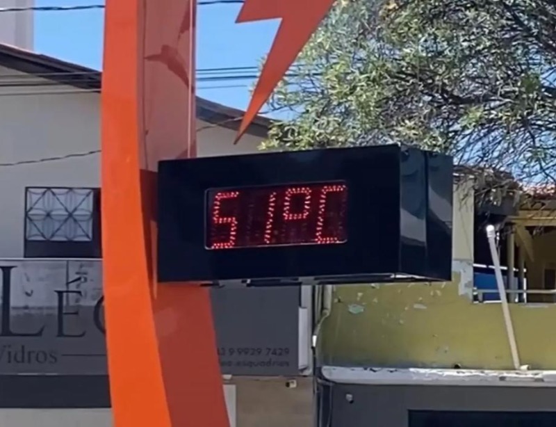 Nesta quinta-feira, 23 de novembro, o internauta Filipe Torres enviou à redação do Patosonline.com o registro feito na Praça Fernando Soares, a popular Praça 47, próximo à Eletro Laser, onde o termômetro recém-instalado no local marcou incríveis 51ºC de sensão térmica no início da tarde, exatamente às 12h06min.