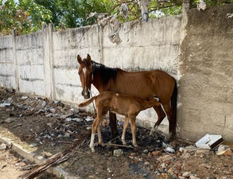 Neste domingo, dia 10 de dezembro, a reportagem do Polêmica recebeu a denúncia de que uma égua estava amarrada há várias horas com seu filhote ao lado. O fato foi registrado na Rua Joaquim Criolo, próximo ao canal do Morro, no Bairro Liberdade, em Patos.