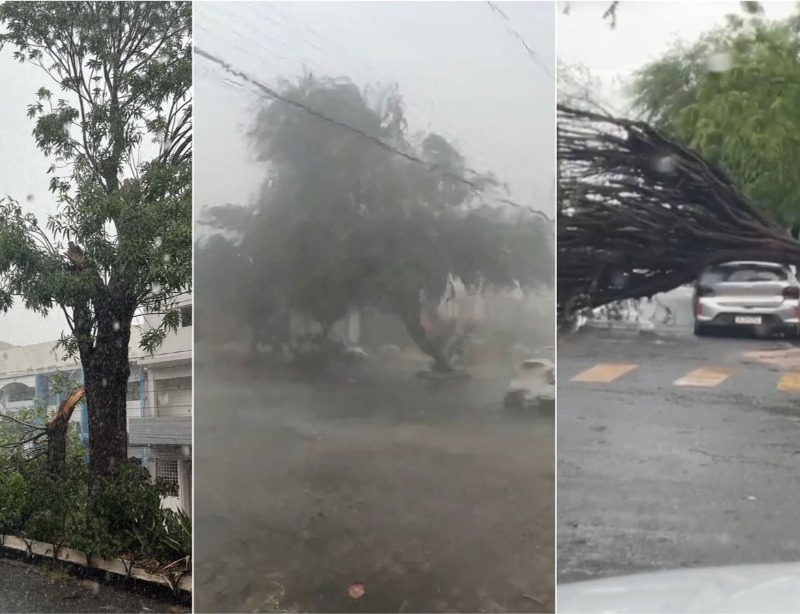 A precipitação teve início por volta das 16h em praticamente todos os bairros da Capital do Sertão. Com a força dos ventos, algumas árvores acabaram caindo em plena via pública e atingindo veículos que estavam estacionados.