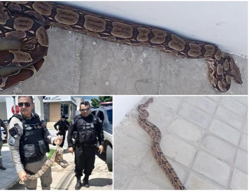 Uma cena inusitada surpreendeu a comunidade de Patos, na tarde desta sexta-feira, 5 de abril, quando uma jiboia de aproximadamente 2 metros foi encontrada na porta de entrada da Escola Branca de Neve, localizada no centro da cidade, no horário em que as crianças se preparavam para entrar em aula.