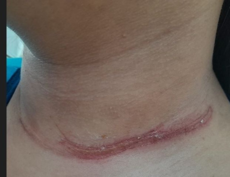 A estudante universitária, que preferiu não se identificar, teve o pescoço e o braço atingidos e a marca da violência do impacto ficou marcada em sua pele. A jovem ainda desequilibrou e por pouco não foi ao chão.