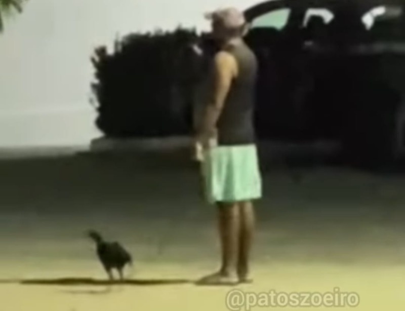 “Rapaz não estou vendo isso não, viu? O cara dando uma voltinha com uma galinha, rapaz. Agora me encabulou. Tu é doido?”, afirmou o homem que gravou a cena.