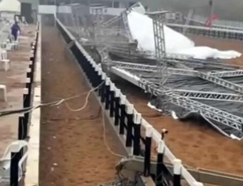 Estrutura de um parque de vaquejadas em Pombal, no Sertão da Paraíba, desabou e deixou duas pessoas feridas, na tarde deste sábado (6 de julho). Chovia e ventava forte na região no momento do acidente.