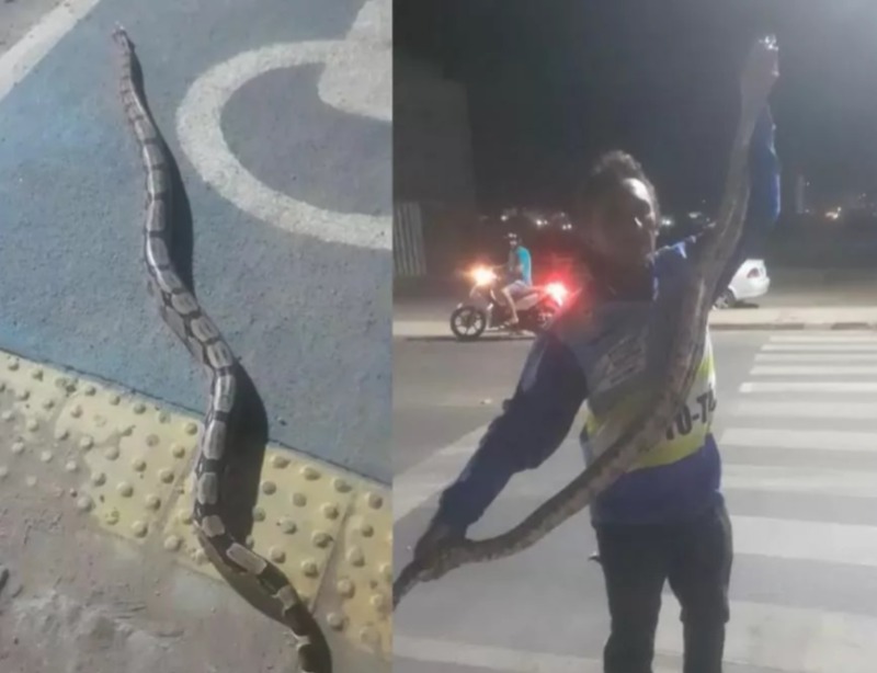 Nando Monteiro, que estava na área e presenciou a cena, relatou ao Patosonline.com que a cobra surgiu de repente, tentando atravessar a movimentada via. Preocupados com a segurança do animal, os populares rapidamente se organizaram para desviar o trânsito e evitar que a jiboia fosse atropelada.