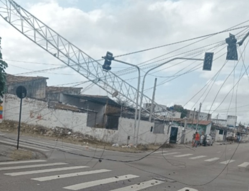 De acordo com imagens que o Portal Paraíba.com.br teve acesso, a torre também atingiu fios de alta tensão, semáforos e atrasou uma das ruas.