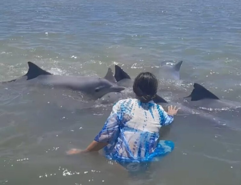 Um grupo de botos-cinza encalhou em um trecho de praia no município de Pitimbu, Litoral Sul paraibano. O encalhe foi filmado pela banhista Ozeane Vanzuita e postado no Instagram nesse sábado (17).