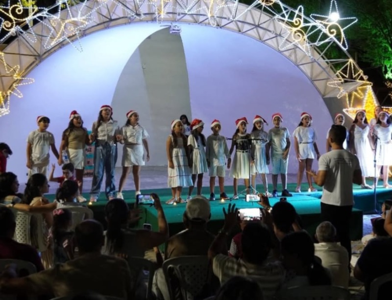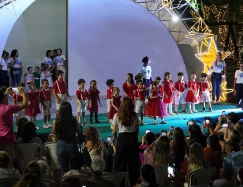 A noite de sábado, 14 de dezembro, reuniu centenas de pessoas na Praça Edvaldo Motta para prestigiar a Cantata Natalina do Centro Educacional Rosa Mística que coloriu a Concha Acústica.