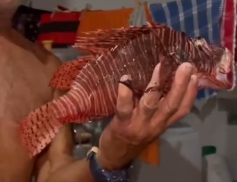 Em vídeo compartilhado nas redes sociais, o pescador, conhecido como Biu, demonstra surpresa ao capturar o peixe-leão, pois nunca havia visto um de perto. “Só vejo o povo falar na televisão, olha ele aí”, diz ao mostrar o animal.