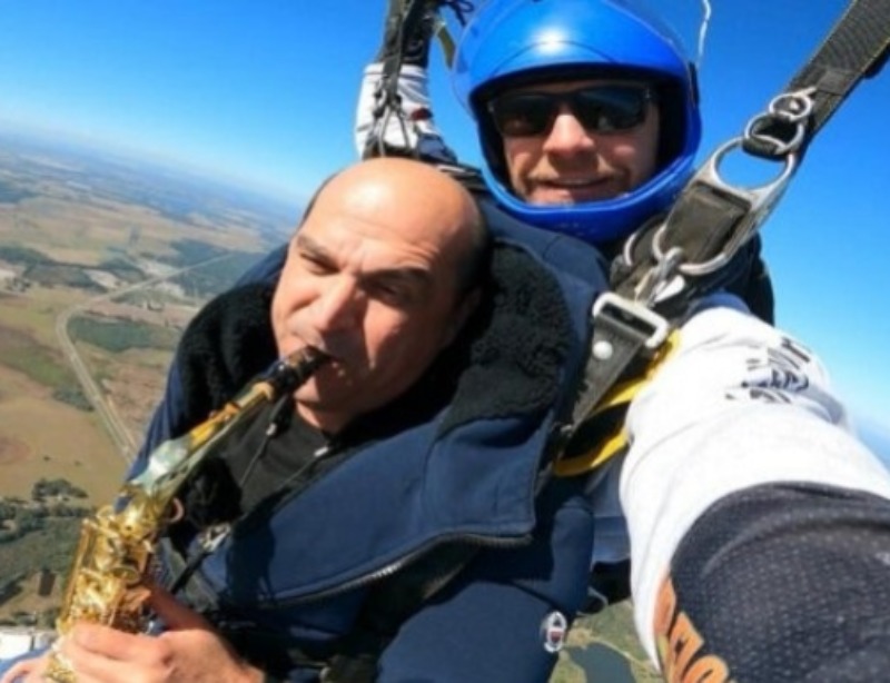 Natural de Patos, no Sertão da Paraíba, Mil Sax tenta agora ser reconhecido como o primeiro saxofonista do mundo a executar uma performance musical em queda livre.