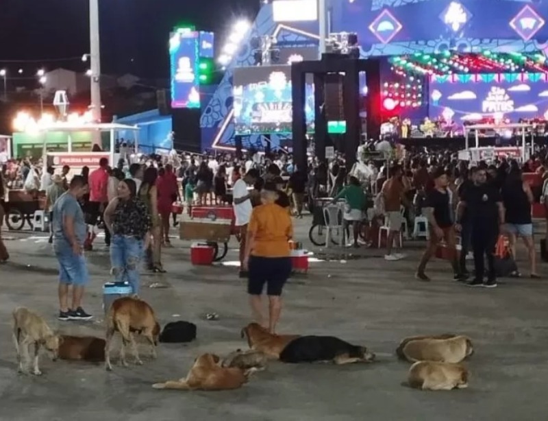 Na noite deste sábado, dia 21 de junho, a reportagem do Polêmica recebeu vídeos e fotos mostrando a quantidade de cães no Terreiro do Forró. Os cães passeiam e se concentram em bandos.