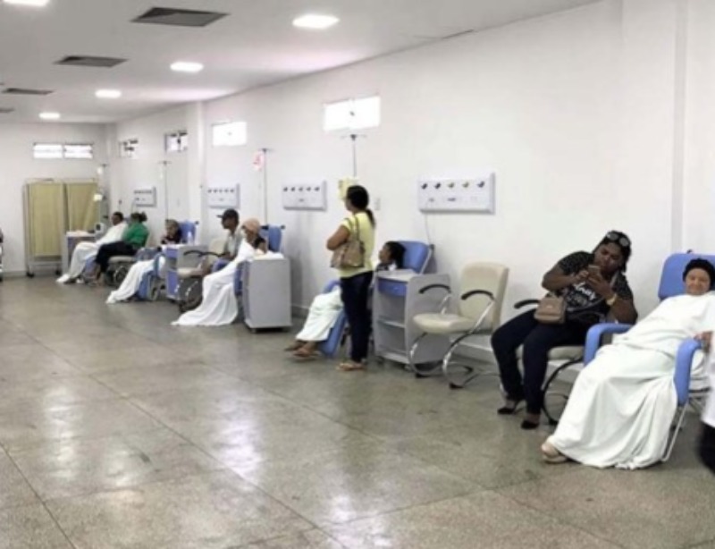 O Hospital do Bem, que completará dois anos de funcionamento em setembro próximo, tem atendimento ambulatorial, tratamento quimioterápico e cirúrgico, para quatro tipos de câncer: pele, próstata, mama e colo de útero. A sala de quimioterapia tem capacidade para atender dez pacientes simultaneamente, inclusive, com os acompanhantes que, em função da pandemia, não estão mais acompanhando as sessões da sala de quimioterapia como forma preventiva. A diretora geral do Complexo, Liliane Sena, explica que essa medida foi tomada para proteger os pacientes cuja imunidade durante o tratamento fica mais suscetível e frágil.