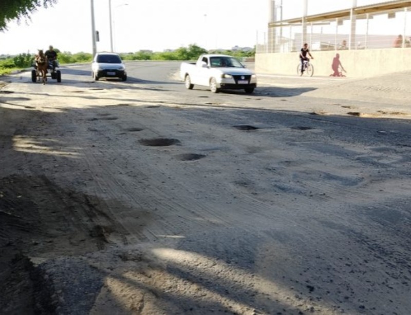 A buraqueira no asfalto se estende desde a saída da Nova Ponte do Jatobá, segue também da saída do estacionamento do Hiper Queiroz e continua em parte considerável da Rua Felipe Camarão, no Bairro Santo Antônio.