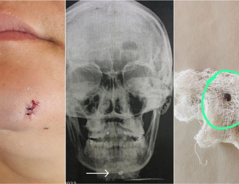 Assustada e sangrando, a mesma procurou atendimento no Hospital Regional de Patos, onde foi atendida, ficando constatado que a mesma, de fato, tinha sido atingida por um projétil de chumbinho que se alojou no seu maxilar.