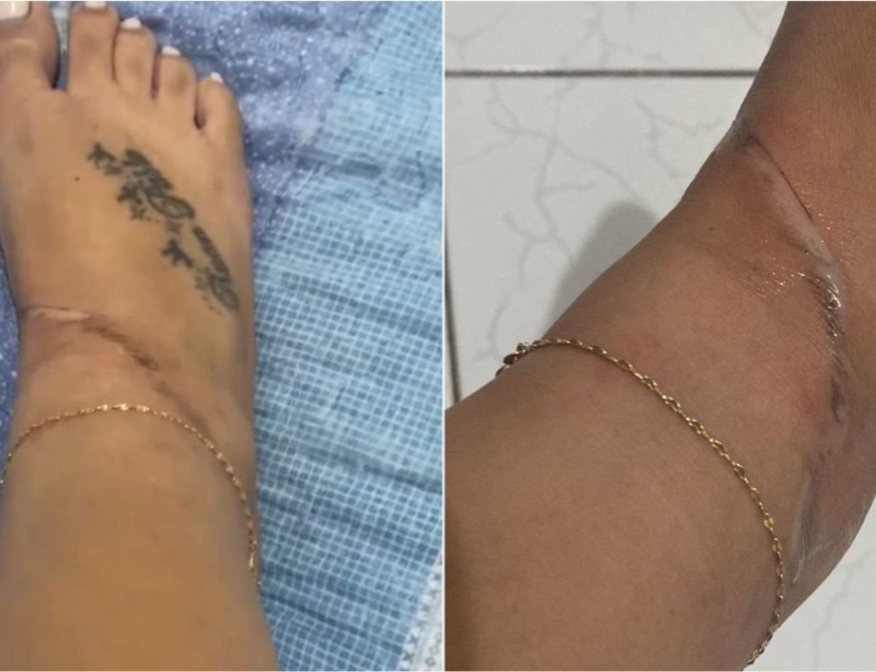 “Não cheguei a cair no chão, porque aparei a moto com a perna esquerda. Quando dei fé do fio, já tava enrolado na minha perna, se tivesse caído tinha sido atropelada pelos carros que vinham atrás. Foi depois da lombada que tem na subida pro Jatobá, só que não vi, porque tava escuro, quando vi o fio já tava enrolado na minha perna”, disse.