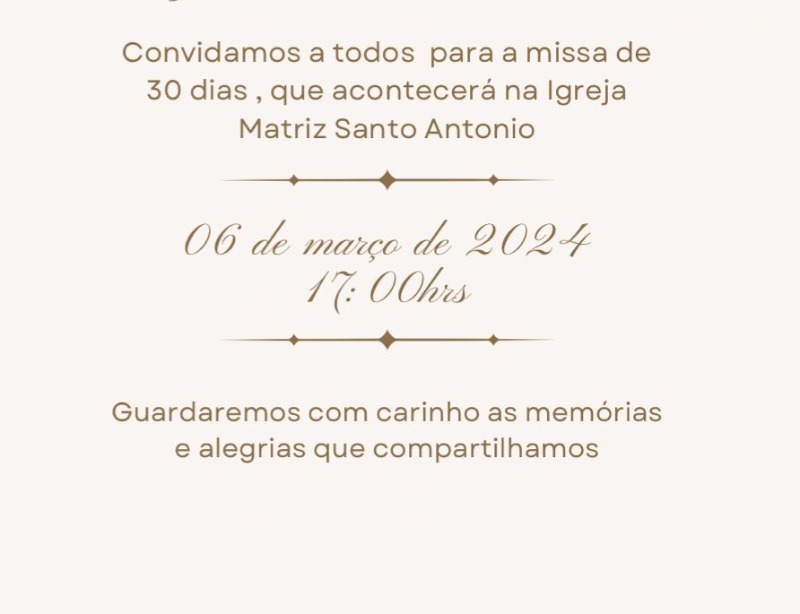 Os familiares agradecem a todos que se fizerem presentes no ato de fé e solidariedade humana.