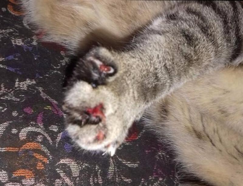 Na manhã desta quinta-feira, 26, o gatinho Pingo, pertencente à comerciária Ana Silva, gerente de uma loja, em Patos, voltou para casa se contorcendo de dor e sangrando muito, com todas as unhas das patas arrancadas
