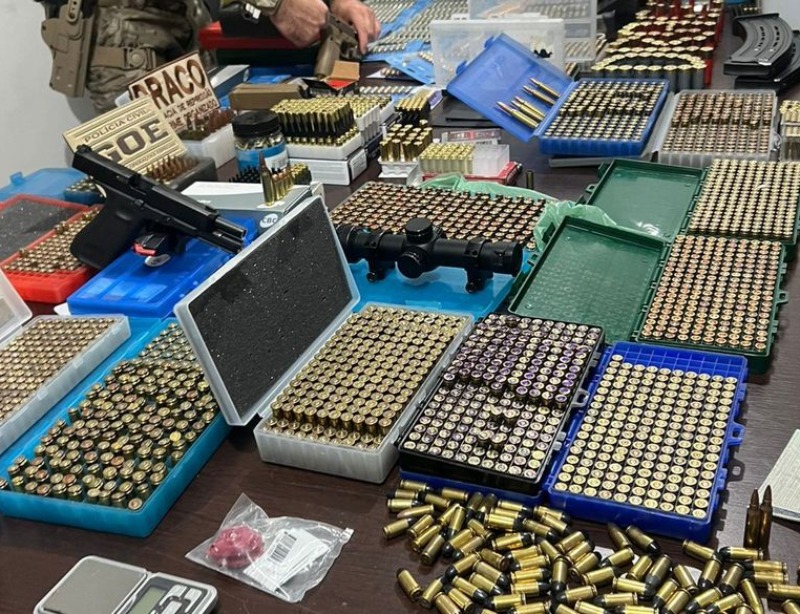 Além das armas, os policiais apreenderam também centenas de munições e duas máquinas de recarga de munições.