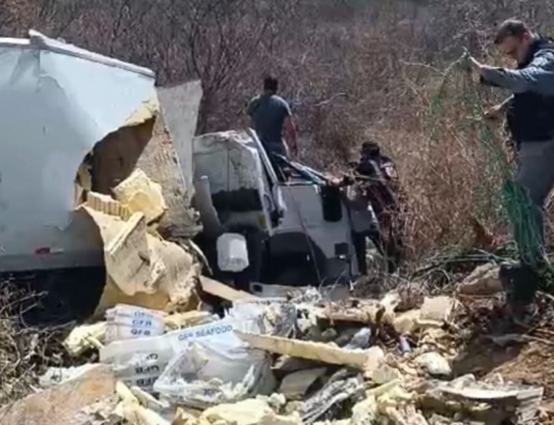 De acordo com informações apuradas pelo Patosonline.com, o sinistro aconteceu por volta das 14h, quando um caminhão baú refrigerado carregado de peixes e pescados, tombou em uma das curvas da serra no momento da descida.