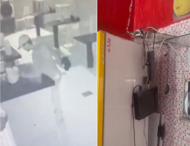 O crime aconteceu por volta das 02h30min e foi capturado pelo circuito interno de segurança da lanchonete.