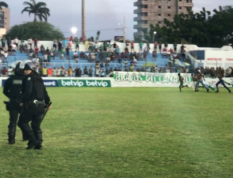 Os cinco integrantes da torcida organizada do Sousa, que estava disposta no Setor D do estádio, destinado exclusivamente para os visitantes, conseguiur burlar a segurança e invadiu o gramado, indo em direção à torcida do Nacional que estava no Setor B, localizado atrás do gol.