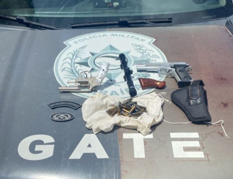 A apreensão foi feita por policiais do Grupamento de Ações Táticas Especiais (GATE), após indicação da inteligência. Equipes continuam fazendo buscar por mais armas que seriam do jovem. OUTRA ARMA – Nas buscas na casa dele, foi apreendido mais um revólver e munições. Até agora foi apreendido o seguinte armamento: Revólver .32, Revólver .38, 3 canivetes, 1 pistola Airsoft, 1 luneta e mais de 40 munições.