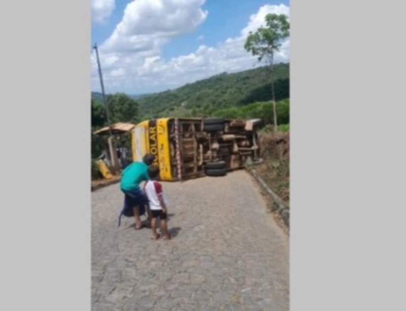 Um ônibus escolar que estava transportando estudantes tombou em uma estrada de Pilõezinhos. O caso aconteceu por volta das 12h desta quarta-feira (20) e deixou alguns estudantes levemente feridos.
