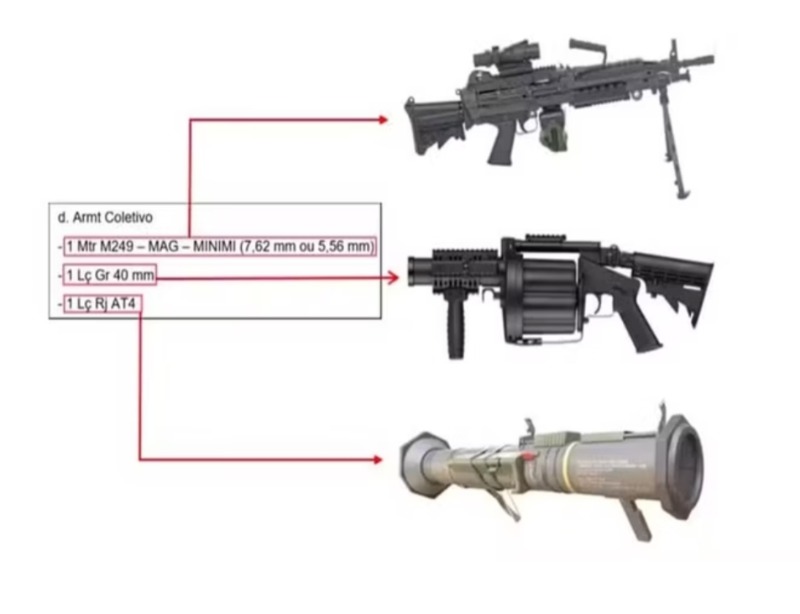 Ainda de acordo com a PF, a primeira arma listada era uma M249, “uma metralhadora leve altamente eficaz, projetada para fornecer suporte de fogo em combate”.