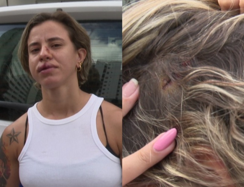 Luana desceu do carro na tentativa de acalmar a situação, mas foi surpreendida pelo motociclista, que começou a agredi-la com o capacete.