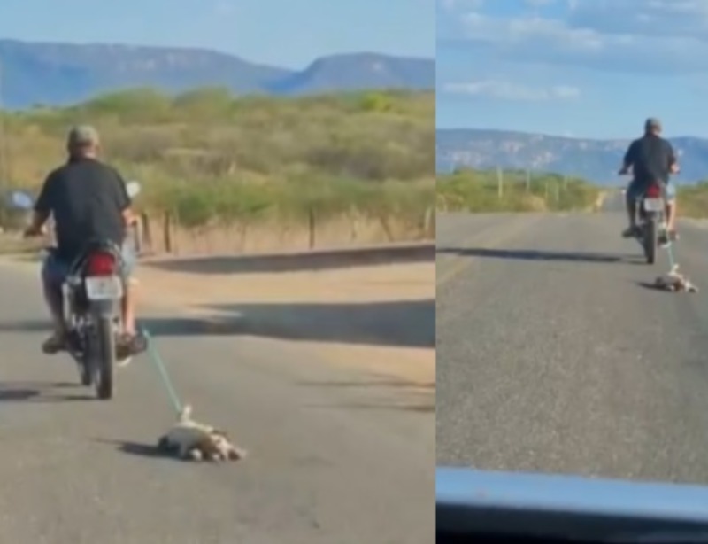 Um homem foi flagrado arrastando um cachorro amarrado a uma corda, preso à traseira de uma motocicleta, na tarde desta quinta-feira (12), na principal via de acesso ao município de Paulista, no Sertão da Paraíba.