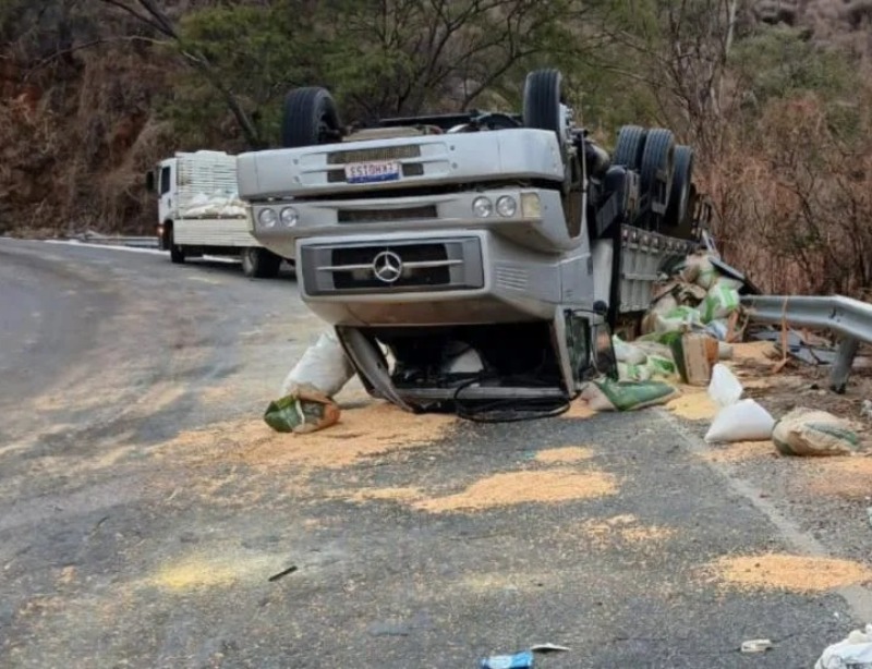 Na noite deste domingo (5), um caminhão Mercedes Benz L1620, de cor prata, carregado com grãos de soja e milho tombou no trecho conhecido como "Apertado da Hora", na Serra do Teixeira, região metropolitana de Patos. O acidente foi causado por uma falha no sistema de freios do veículo.