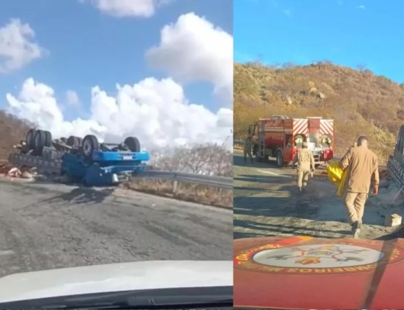 Um grave acidente registrado na tarde desta quarta-feira (23) na rodovia estadual PB-262, na Serra do Teixeira, mais precisamente na perigosa “Curva do Apertar da Hora”, resultou na morte de dois homens após o tombamento de um caminhão carregado com cimento e tijolos. As vítimas ainda não foram identificadas, pois não portavam documentos pessoais.