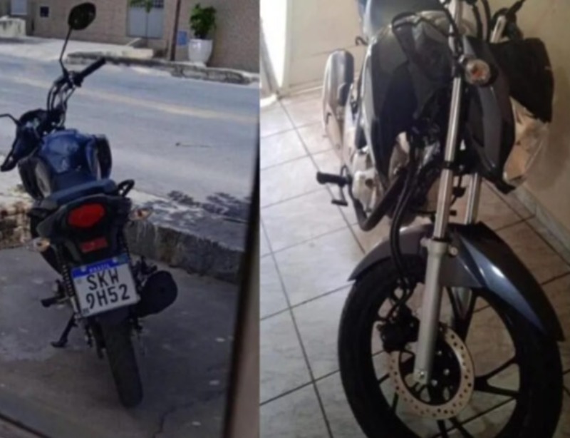 A motocicleta levada pelo suspeito é uma Honda Fan 160, ano 2024, cor cinza metálica, placa SKW9H52.