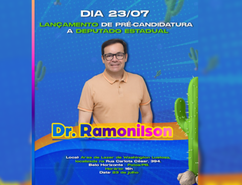 O evento ocorrerá a partir das 16h na Área de Lazer de Washington Lustosa, localizada na Rua Carlota César, 394, Belo Horizonte – Patos/PB e contará com a presença do Ex-Senador Cássio Cunha Lima. Juiz aposentado, Dr. Ramonilson disputou as eleições municipais de 2020 em Patos e somou mais de 20 mil votos, totalizando cerca de 42%.