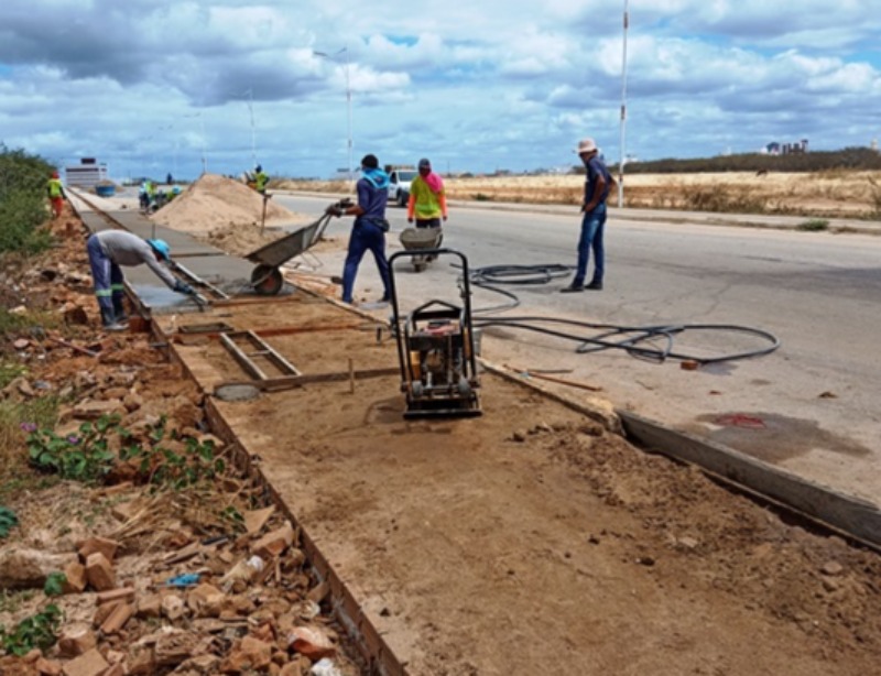 Na manhã desta segunda-feira, dia 01 de agosto, trabalhadores da empresa MAC estavam realizando serviços de construção da calçada que vai percorrer toda a extensão da Alça Sudeste. A empresa foi sublocada para dar agilidade nos serviços e segue avançando nas obras.