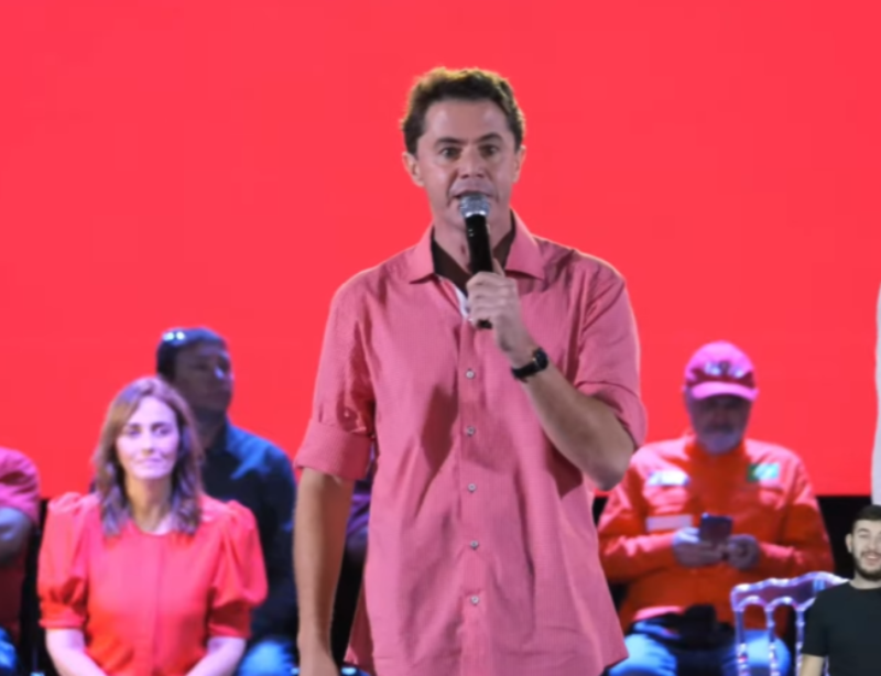 Sob uma forte chuva que caía no Parque do Povo, em Campina Grande, o pré-candidato a governador da Paraíba Veneziano Vital do Rêgo (MDB) discursou para milhares de pessoas que foram ao evento do ex-presidente Lula na Paraíba.