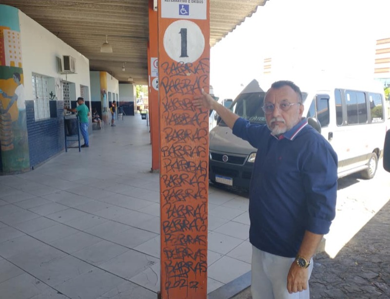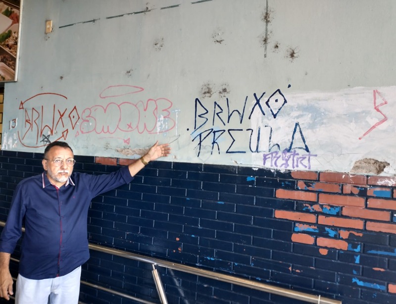 O vereador alertou para a destruição das pinturas do artista plástico Perigo Neto por pichações que se espalham por todo o prédio. “O painel do nosso amigo artista Perigo Neto pichado”, lamentou.
