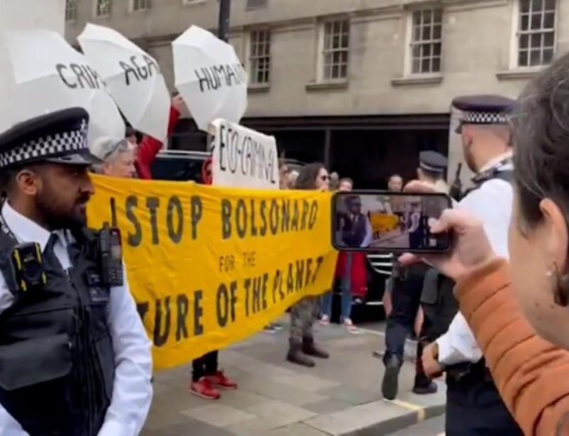 O presidente Jair Bolsonaro (PL) foi alvo de protestos na manhã deste domingo (18) em Londres, onde está para participar do funeral da rainha Elizabeth II – e para fazer campanha eleitoral, como fez no momento de sua chegada à embaixada do Brasil.