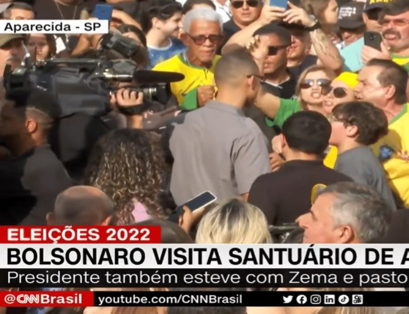 Durante a passagem do presidente Jair Bolsonaro (PL), candidato à reeleição, na cidade de Aparecida do Norte (SP), bolsonaristas transformaram uma missa celebrada na tarde desta quarta-feira (12) em um campo de guerra contra profissionais da comunicação.