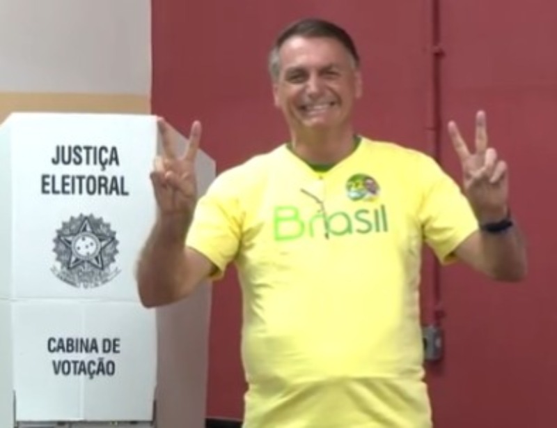 O candidato à reeleição à presidência da República, Jair Bolsonaro (PL), chegou para votar na Vila Militar, Zona Oeste do Rio, pouco antes das 8h deste domingo (30).