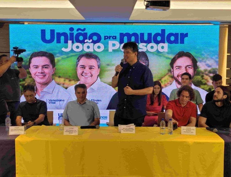 A aliança entre Podemos, PSDB, União Brasil, MDB, Cidadania e PRD foi confirmada durante evento no bairro do Miramar, na capital.