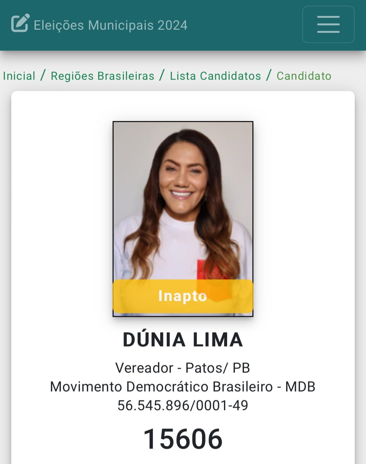 A candidata a vereadora pelo MDB de Patos, Alexandrina Figueredo Ferreira Lima, a DÚNIA LIMA, que é irmã da baronesa Priscila Lima, anunciou sua renúncia a postulação a uma vaga na Câmara de Vereadores.
