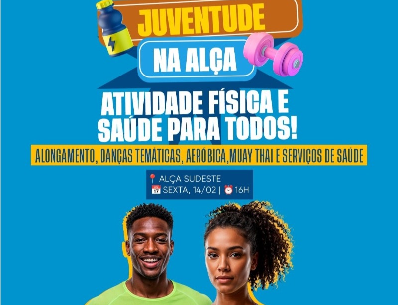 A Prefeitura de Patos, por meio da Secretaria Executiva de Esporte e Lazer e da Secretaria Executiva de Juventude, dará início à nova temporada do Juventude na Alça na sexta-feira, 14 de fevereiro, a partir das 16h, na Alça Sudeste. O evento oferece atividades gratuitas para promover saúde e bem-estar, reunindo alongamento, danças temáticas, aeróbica e Muay Thai, além de serviços de saúde.