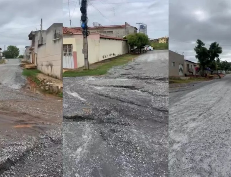 "Passaram o pó de brita, mas não concluíram, e a chuva está levando aos poucos. Disseram que depois do Carnaval viriam fazer, mas o absurdo tá aqui, e a buraqueira vai voltar tudo de novo, sem falar na falha", lamentou um morador em vídeo.