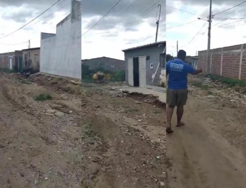 De acordo com o pedreiro Luciano Nóbrega Ferreira, em um vídeo enviado à redação, a rua foi contemplada com uma ordem de serviço para pavimentação em paralelepípedos, atendendo a uma antiga demanda dos moradores. No entanto, há cerca de dois meses, após a realização do serviço de terraplanagem e a colocação do material necessário para a execução da obra, os trabalhos foram interrompidos sem explicação.