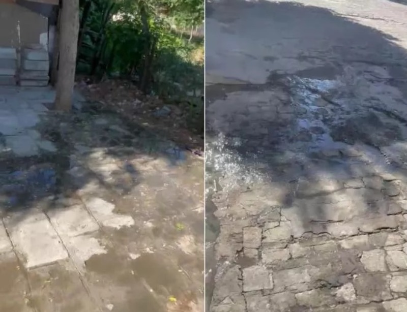 Além dos problemas sanitários, a água suja escorrendo pela rua também prejudica a mobilidade e compromete a infraestrutura da via, acelerando o desgaste do calçamento.
