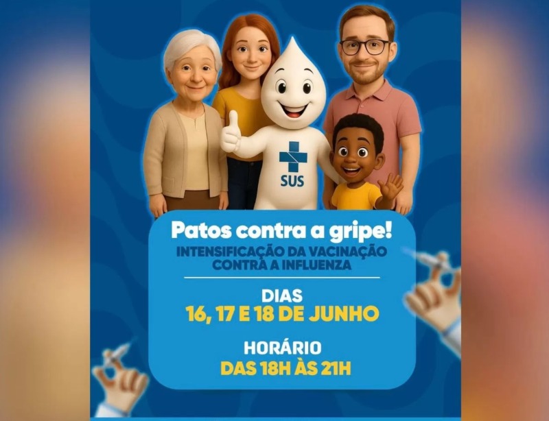 A Prefeitura de Patos, por meio da Secretaria Municipal de Saúde, segue com a intensificação da vacinação contra a gripe (Influenza), oferecendo atendimento em horário estendido para facilitar o acesso da população, especialmente dos trabalhadores que não conseguem comparecer às unidades durante o dia.