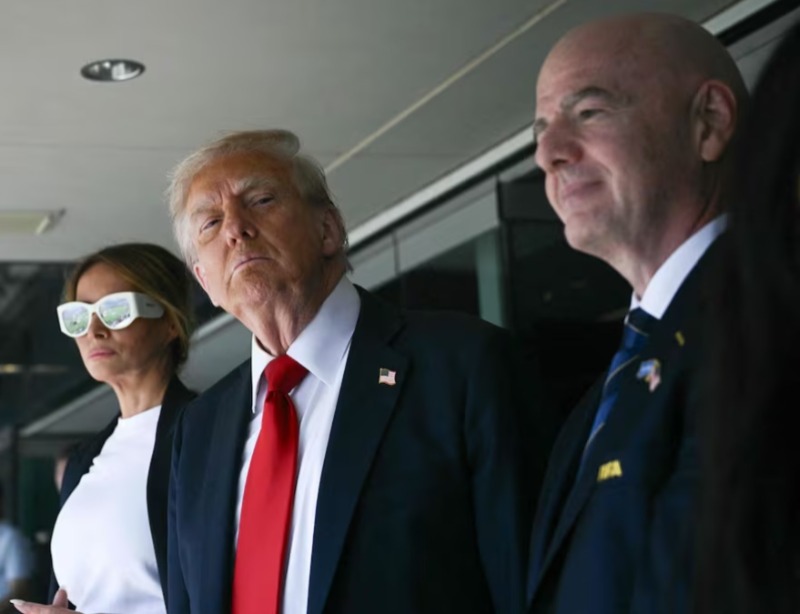 Trump era convidado de honra da final entre Chelsea e Paris Saint-Germain, reforçando sua proximidade com o presidente da Fifa, Gianni Infantino.