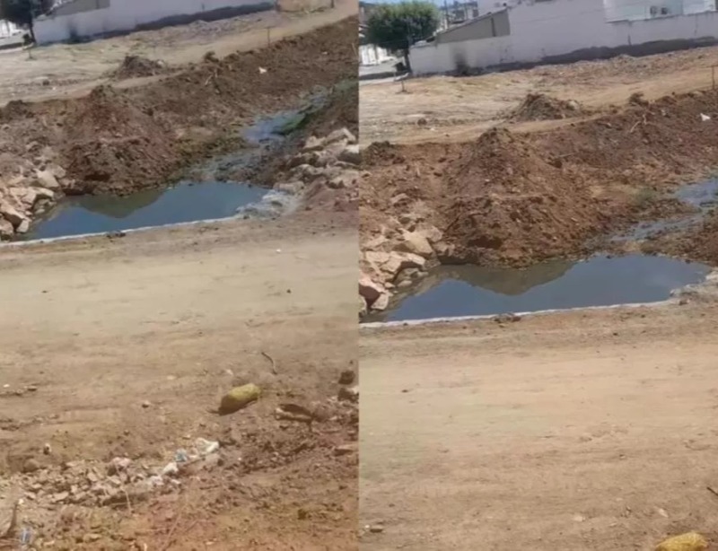 Moradores do bairro Salgadinho, em Patos, estão enfrentando transtornos causados pelo acúmulo de esgoto parado em uma obra de pontilhão localizada na Rua Deusenita Alves do Nascimento. De acordo com as denúncias, a água não está escoando corretamente após a intervenção realizada no local, provocando mau cheiro intenso, além da proliferação de mosquitos.
