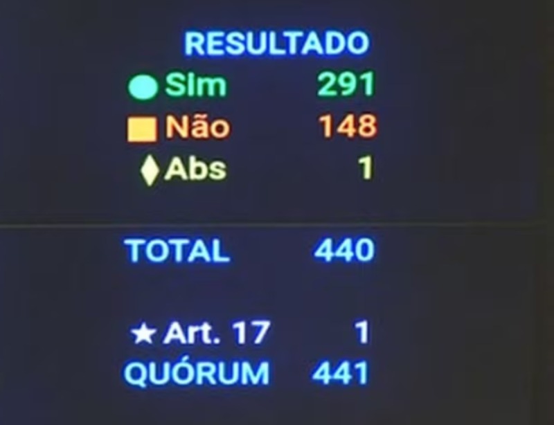 Foram 291 votos a favor e 148 votos contra, além de 1 abstenção. 72 deputados estavam ausentes.